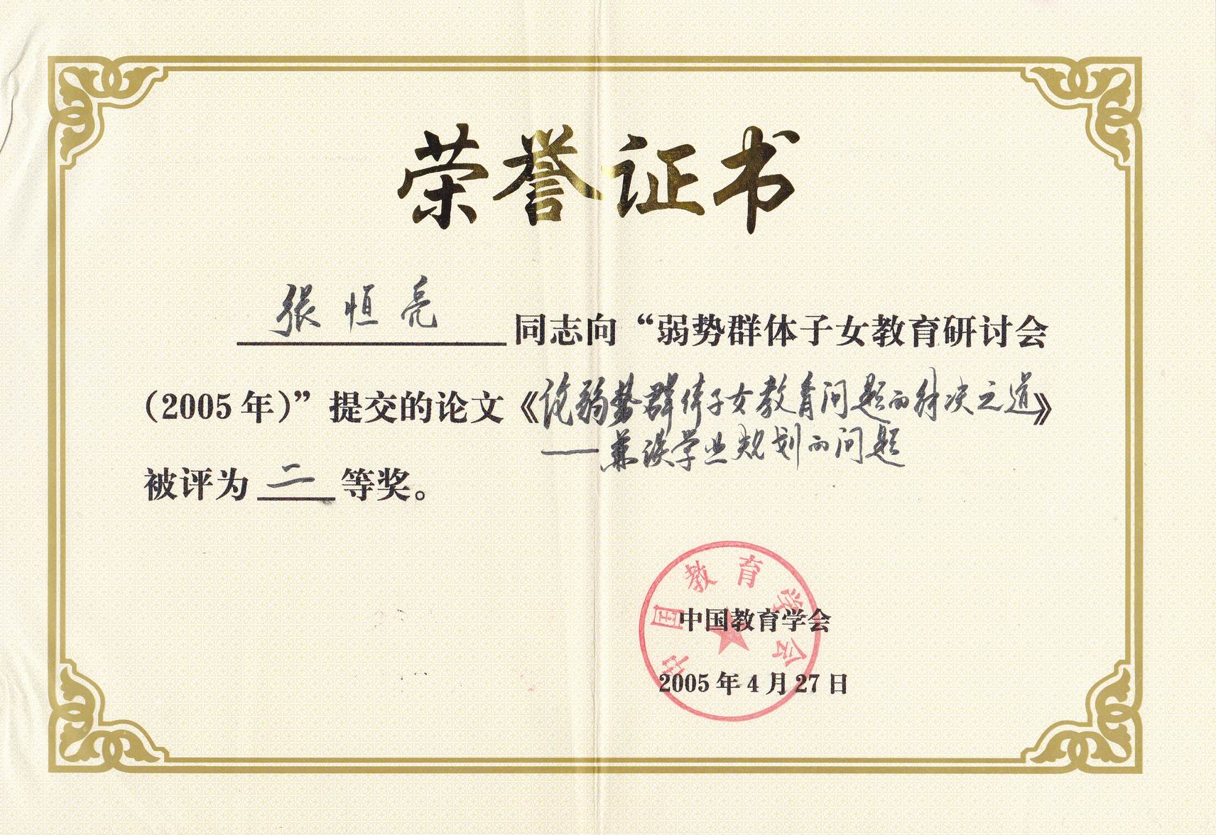 这是明略研究院首席专家张恒亮老师于2005年参加中国教育学会学术会议时,获得的论文奖项。